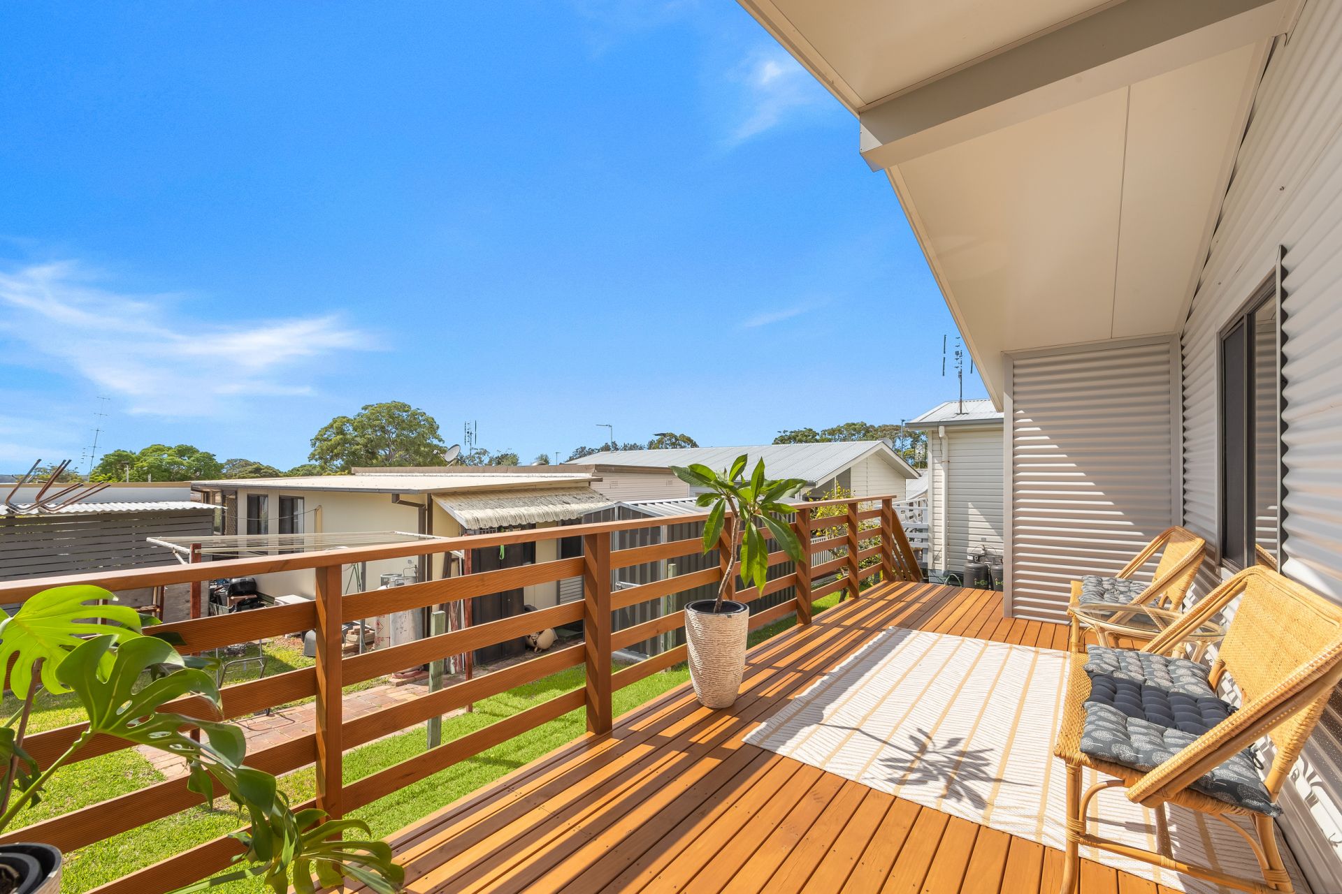 Large sundrenched deck enjoying views out over Lake Munmorah
