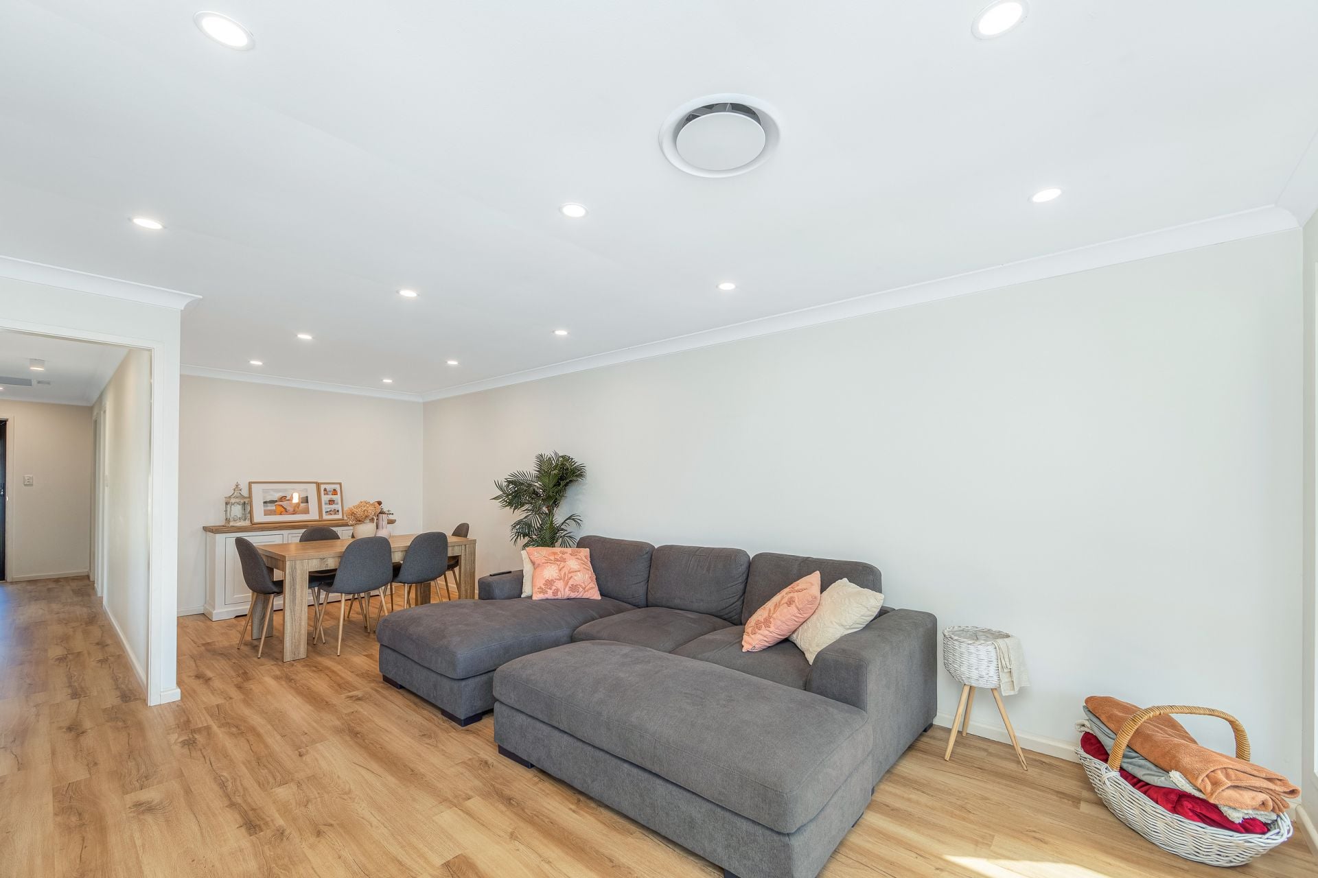 The home features three bedrooms, two complete with built-in wardrobes, along with a spacious open plan lounge and dining area that flows effortlessly from the functional galley-style kitchen. A generous main bathroom services the home, while ducted air conditioning ensures year-round comfort.