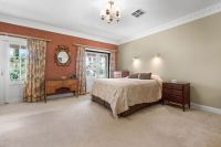 The main house includes four spacious bedrooms, including a master suite with a triple built-in wardrobe and ensuite. Additional bedrooms feature double built-in wardrobes, carpets, and ducted air conditioning. The cozy living spaces include a lounge, formal dining room, and open-plan kitchen and family area with a Coalbrookdale wood heater. The kitchen boasts a large pantry and garden views. Outside, enjoy a landscaped garden with lush greenery, terraced pathways, and a tranquil BBQ area surrounded by bushland alive with wildlife.